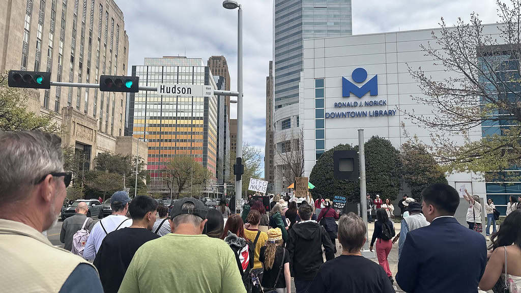 Like the first “No Kings” protest in June of last year, and the second in October, Saturday’s event was organized locally by Indivisible Oklahoma and 50501 Oklahoma with other supporting groups such as the Oklahoma ACLU and Oklahoma City Democratic Socialists of America.