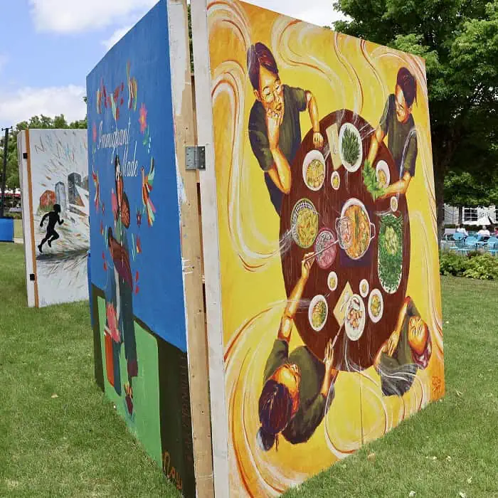 Nearby, the Community Canvas, presented by the Artisans Young Professionals group, lets festival-goers help create a mural inspired by the anniversary poster by flinging, splattering, and spreading paint.