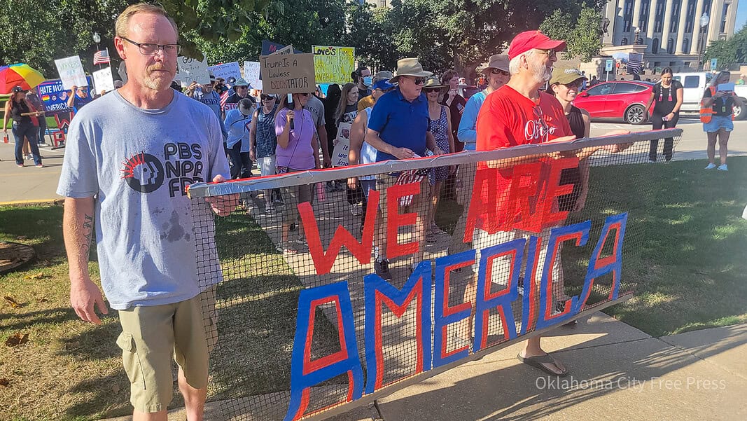 The event, organized by 50501 OK and Indivisible OK, which also coordinated the Rage Against the Regime and No Kings protests, featured speeches, music, and advocacy tables.