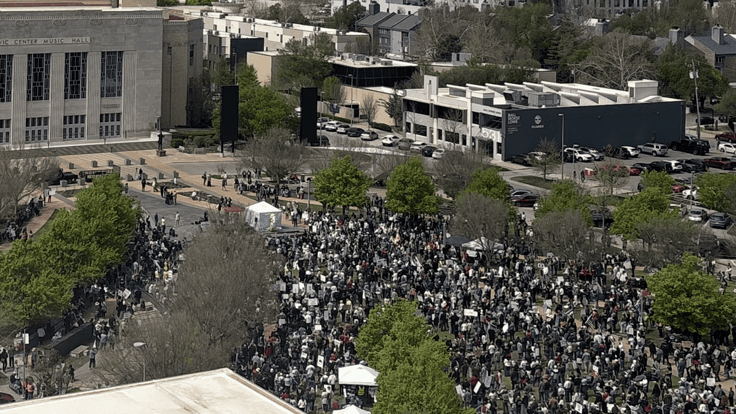OKLAHOMA CITY – Thousands gathered in OKC’s Bicentennial Park Saturday afternoon for the third installment of the ongoing “No Kings” protest movement, with activists rallying and marching in broad opposition to Trump administration policy, from immigration enforcement to the war in Iran.
