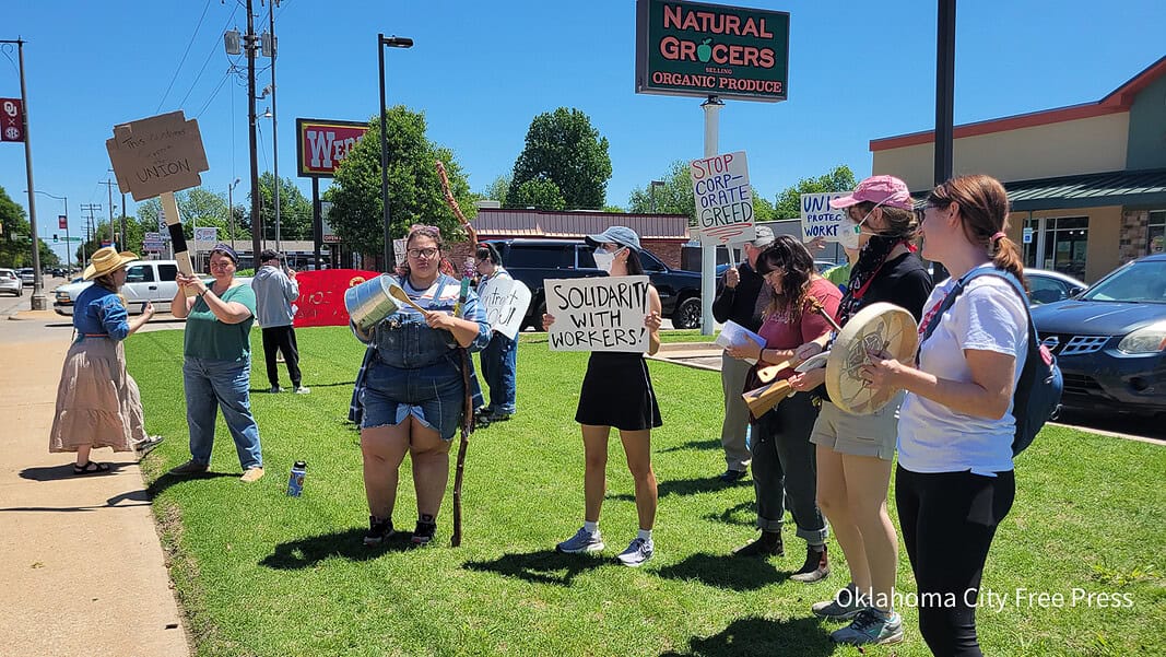 Burns alleged the companies have engaged in tactics aimed at undermining union efforts. “They recently brought an HR rep into the Norman store to write people up for every little thing, basically. We had another pro-union worker fired a couple of days ago for being five minutes late,” she said.