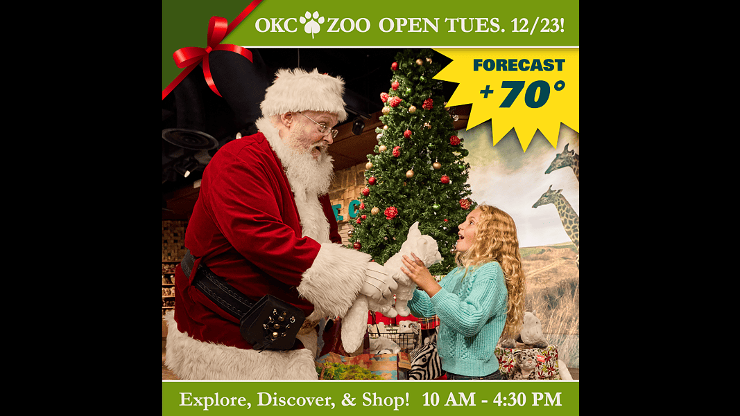 The Oklahoma City Zoo and Botanical Garden has a gift for all to enjoy: an extra day to explore the Zoo! The OKC Zoo is in its winter hours, but due to the unseasonably warm temperatures predicted in the coming the days, the Zoo will open on Tuesday, December 23, 2025 from 10 a.m. to 4:30 p.m. with the last entry at 3:30 p.m.