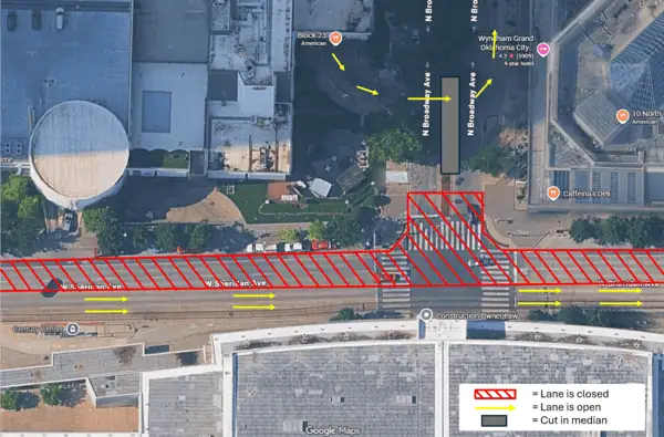 - From January 19 – March 1, N Broadway Avenue will be closed between W Sheridan Avenue and W Main Street for the installation of a new OG&E manhole.