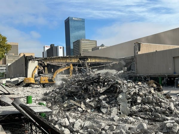 - Crews have spent the week demolishing the southwest side of the building. They will keep working their way to the north and center of the Myriad Convention Center.